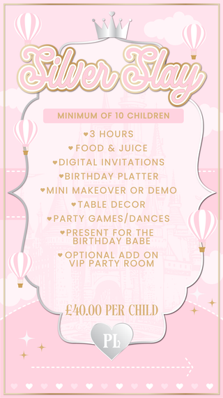 Choose from our Birthday Packages, each one bursting with beauty, creativity, and unforgettable moments. From hair glitter and makeovers to fabulous party games, delicious treats, and luxe table decor, every detail is designed to leave your birthday babe glowing.